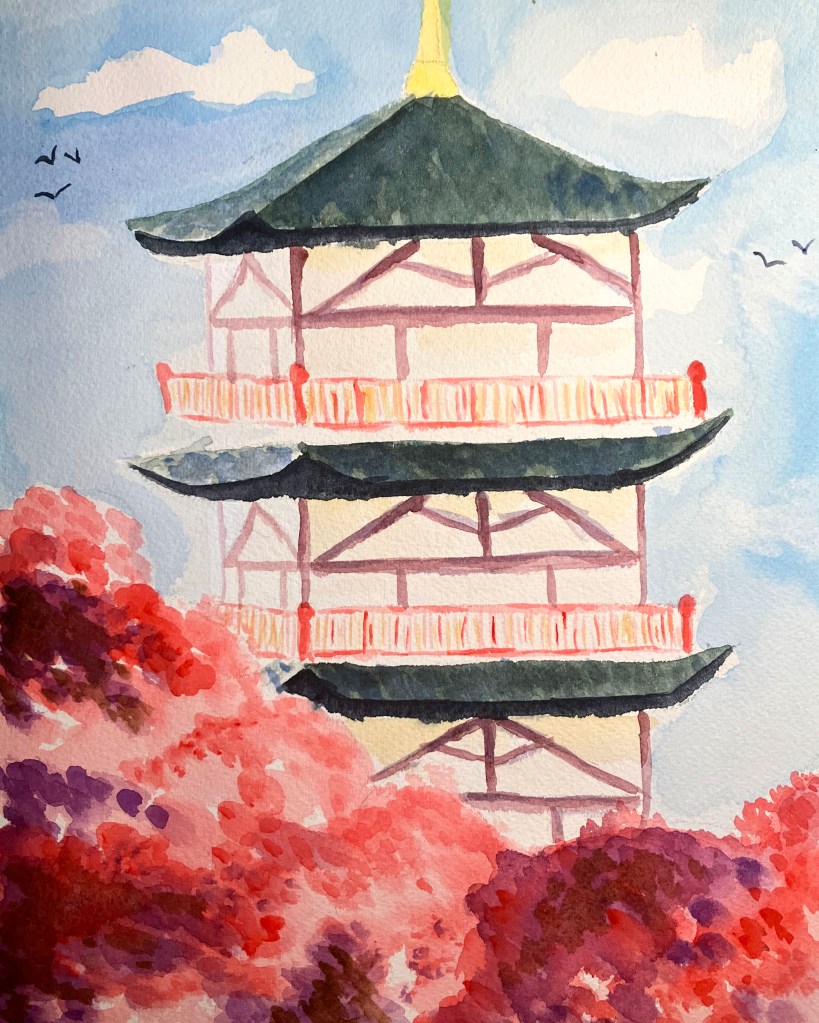 Japanese Temple, Watercolour